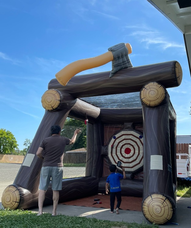 Unleash your inner lumberjack with the Lumberjack Challenge, a safe and exciting foam axe-throwing game for all ages. Up to two players face off at once, each with three foam axes, aiming for the bullseye and ultimate bragging rights. Fast, competitive, and totally safe, this crowd-favorite is perfect for backyard parties, school carnivals, church festivals, and corporate events across Sacramento and surrounding areas.